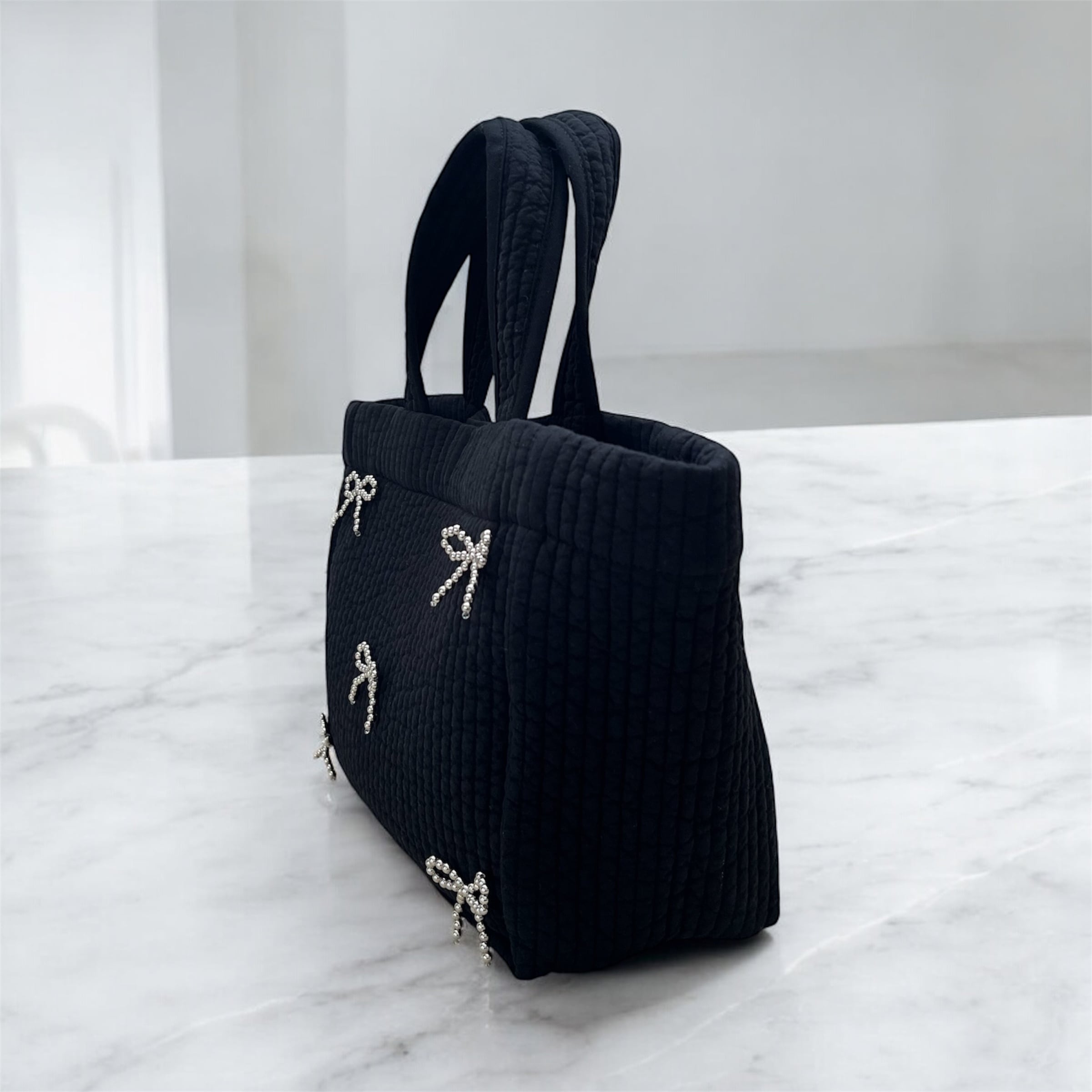 パールリボン ヌビバッグ【ブラック×シルバーリボン】