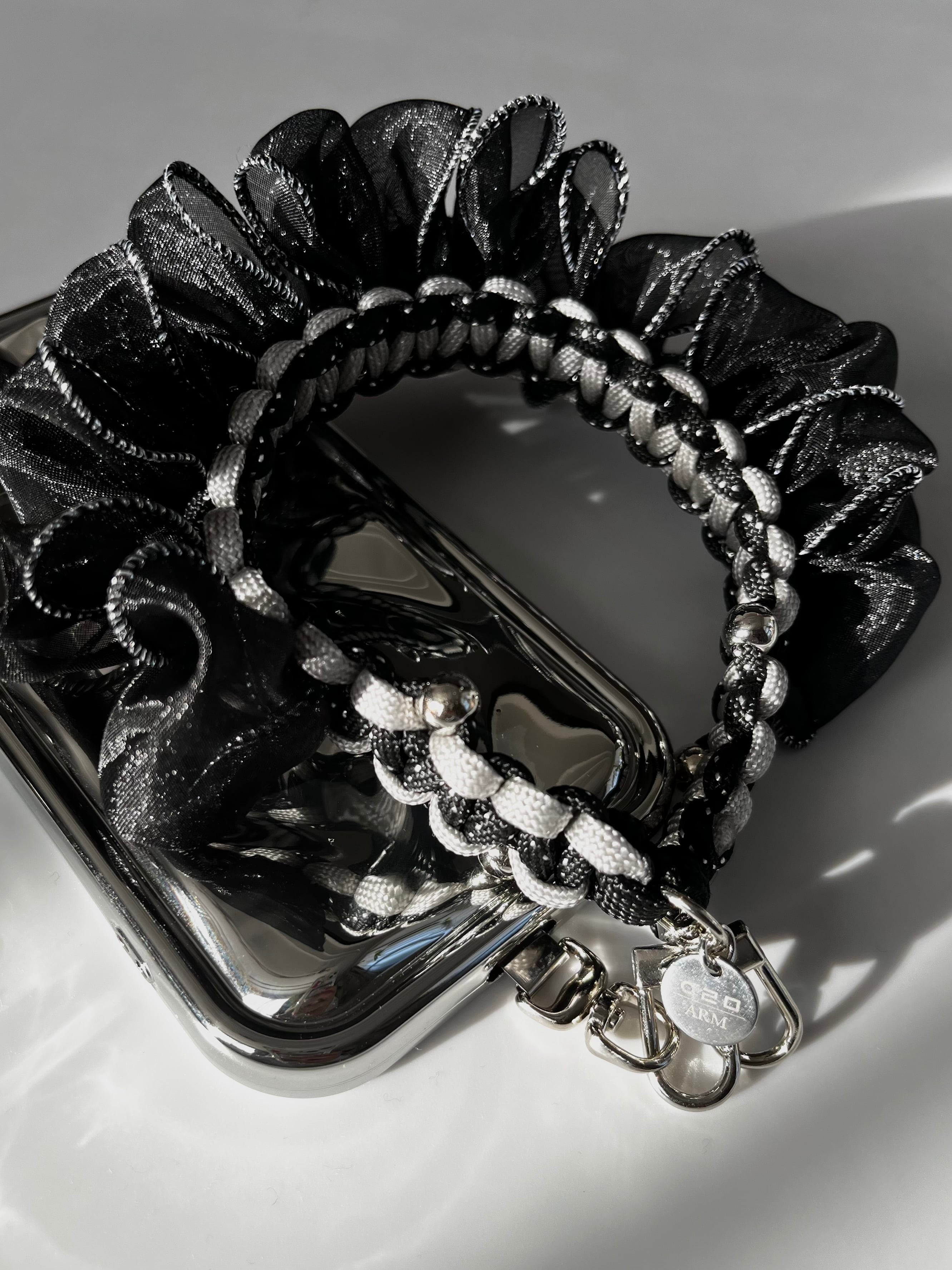 こちらの商品は一点もののハンドストラップです。軽くて丈夫なパラコード製で、シンプルながらもスタイリッシュなモノトーンデザインが魅力。ARMロゴのオリジナルチャームがアクセントとなり、日常使いから特別なシーンまで幅広くお使いいただけます。デイリーユースはもちろん、特別な贈り物としても喜ばれるアイテムです。