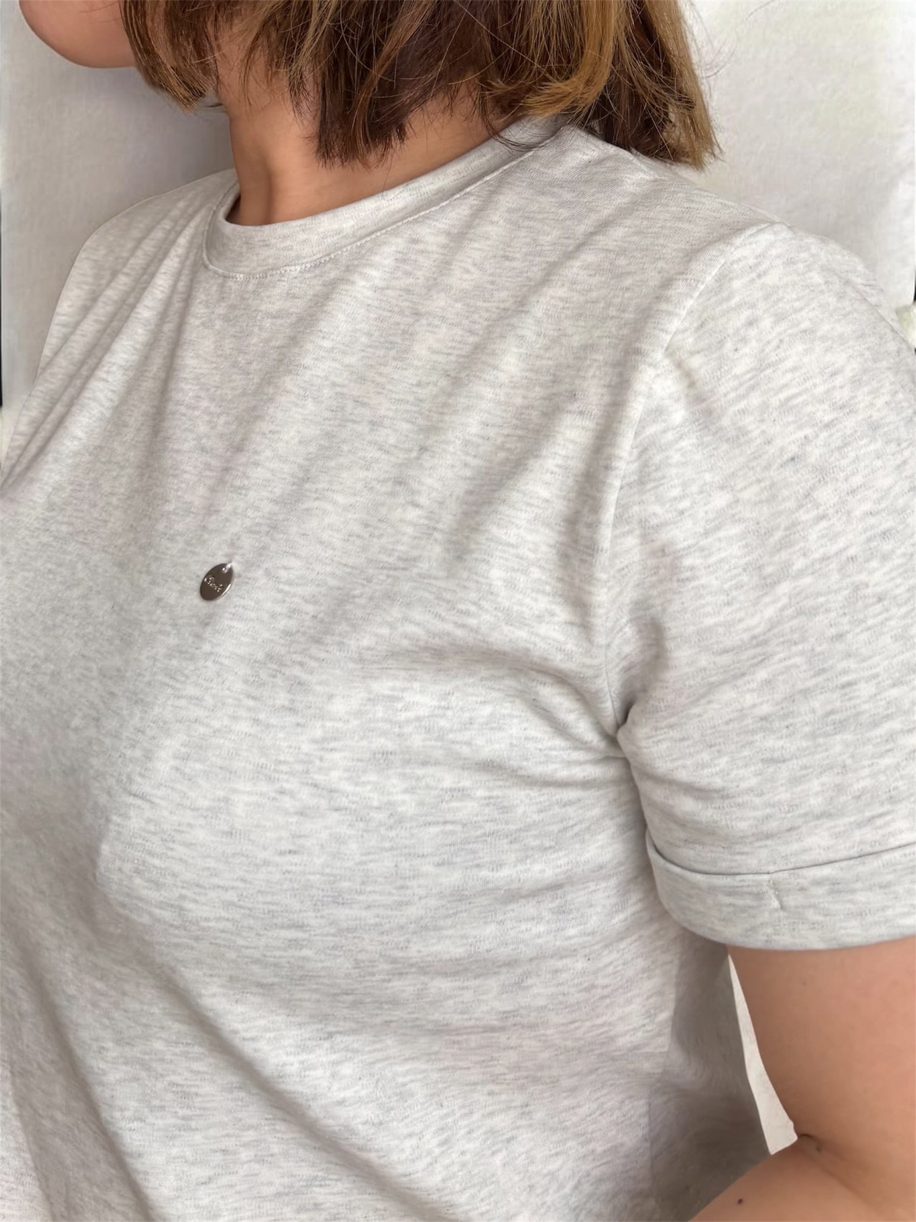 上質なモダールスパン素材を使用したペンダントTシャツは、柔らかさと通気性に優れ快適な着心地を実現。胸に施されたペンダントデザインがさりげないアクセントとなり、シンプルながらもお洒落な印象を与えます。また、袖は折り返しデザインになっており、リラックス感とスタイリッシュさを兼ね備えた一着です。