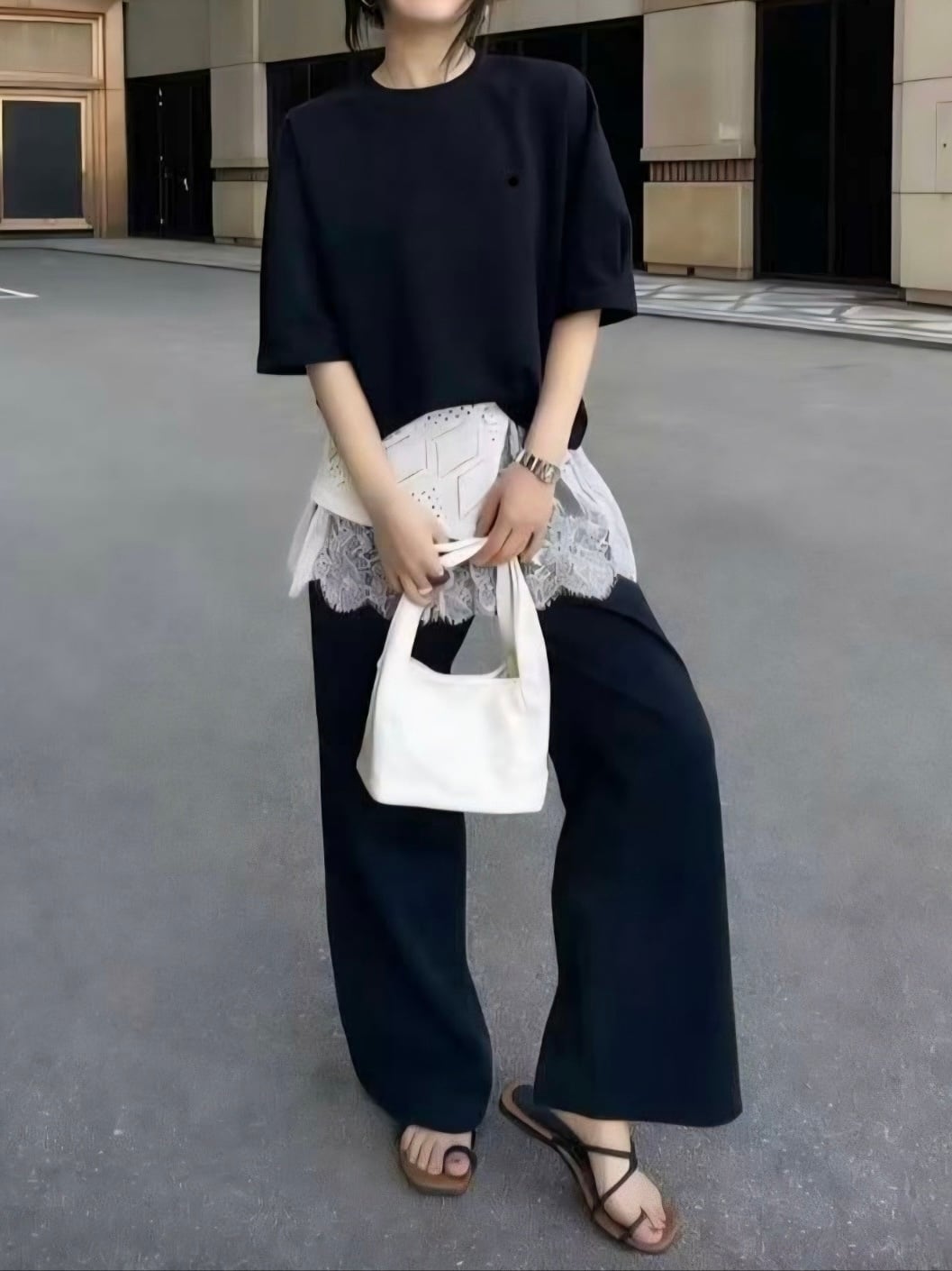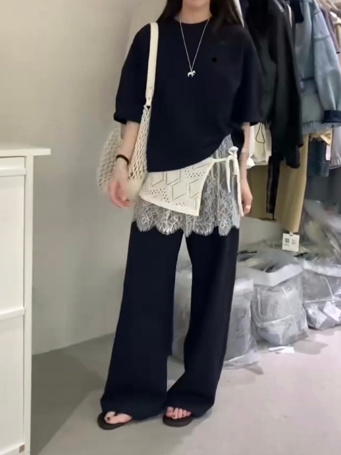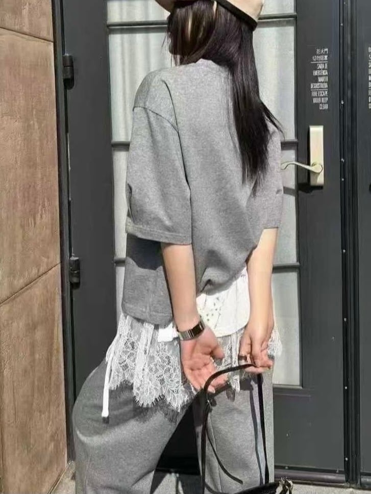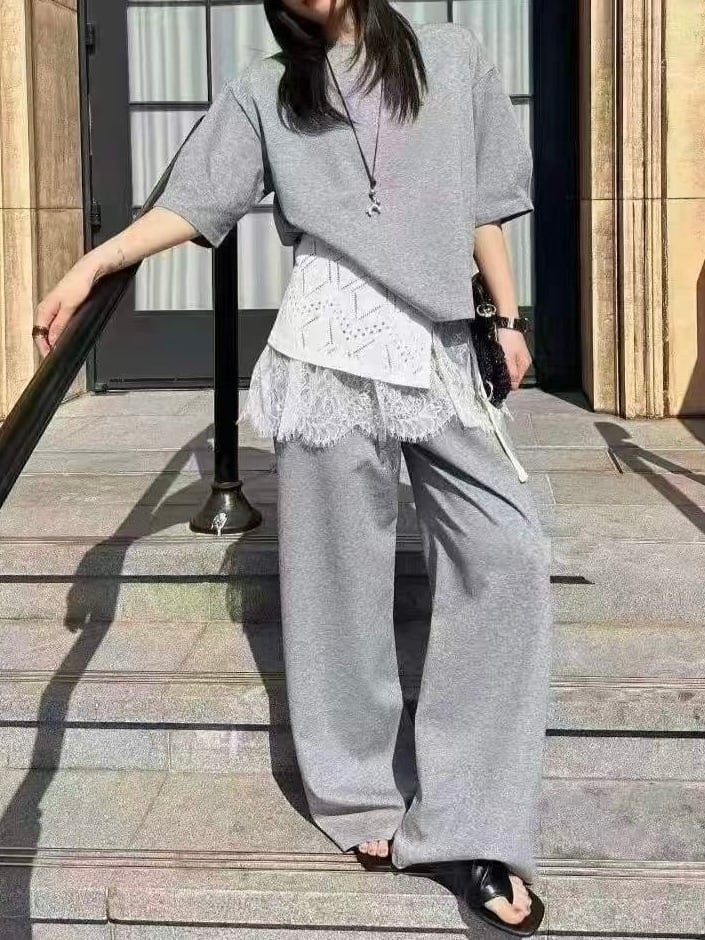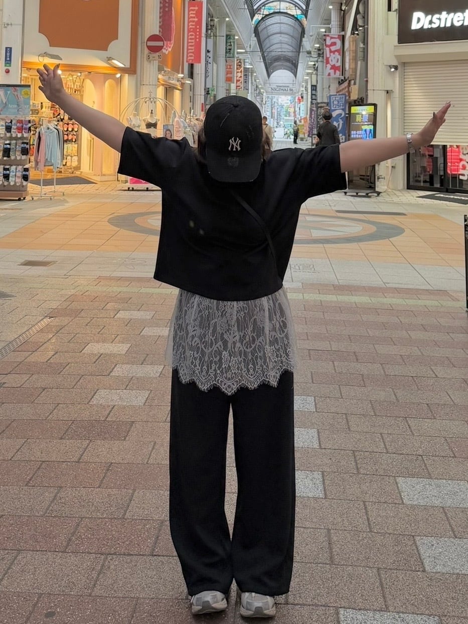 コーディネートがこれ一つで完成する、#レースレイヤードセットアップ。心地よいリラックス素材を使用しており、柔らかな肌触りと快適な動きやすさを実現。また、繊細なレースがシンプルの中に華やかさや上品さ、可愛らしさをを演出します。腕部分に施されたタックがシルエットにさりげないアクセントを加えながらも気になる二の腕をカバーし、リラックスした着心地を維持しています。また、パンツのウエストはゴム仕様で、長時間の移動や旅行にも最適な楽ちんアイテムです ♪